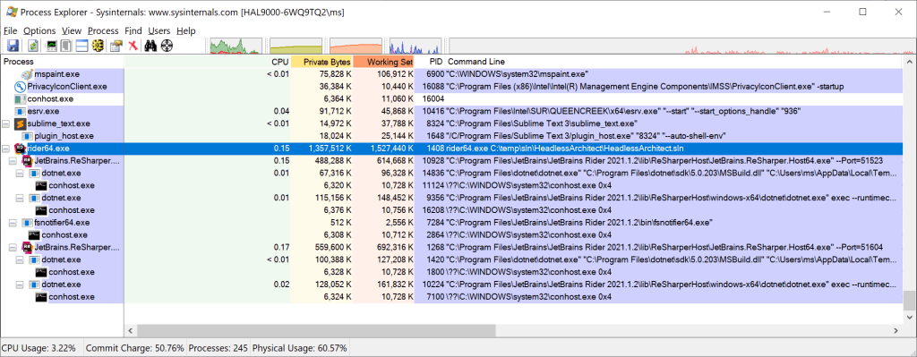 For some reason, WSL sometimes thinks the rider.exe process is still running after Windows thinks it has stopped; the pskill commands clear up those ghost WSL processes. Even if you don’t disown and pkill the rider process, they remain active even if you close the Windows Terminal hosting the bash shell that launched it; the rider64.exe moves from being a descendant of Windows Terminal to being a root task.