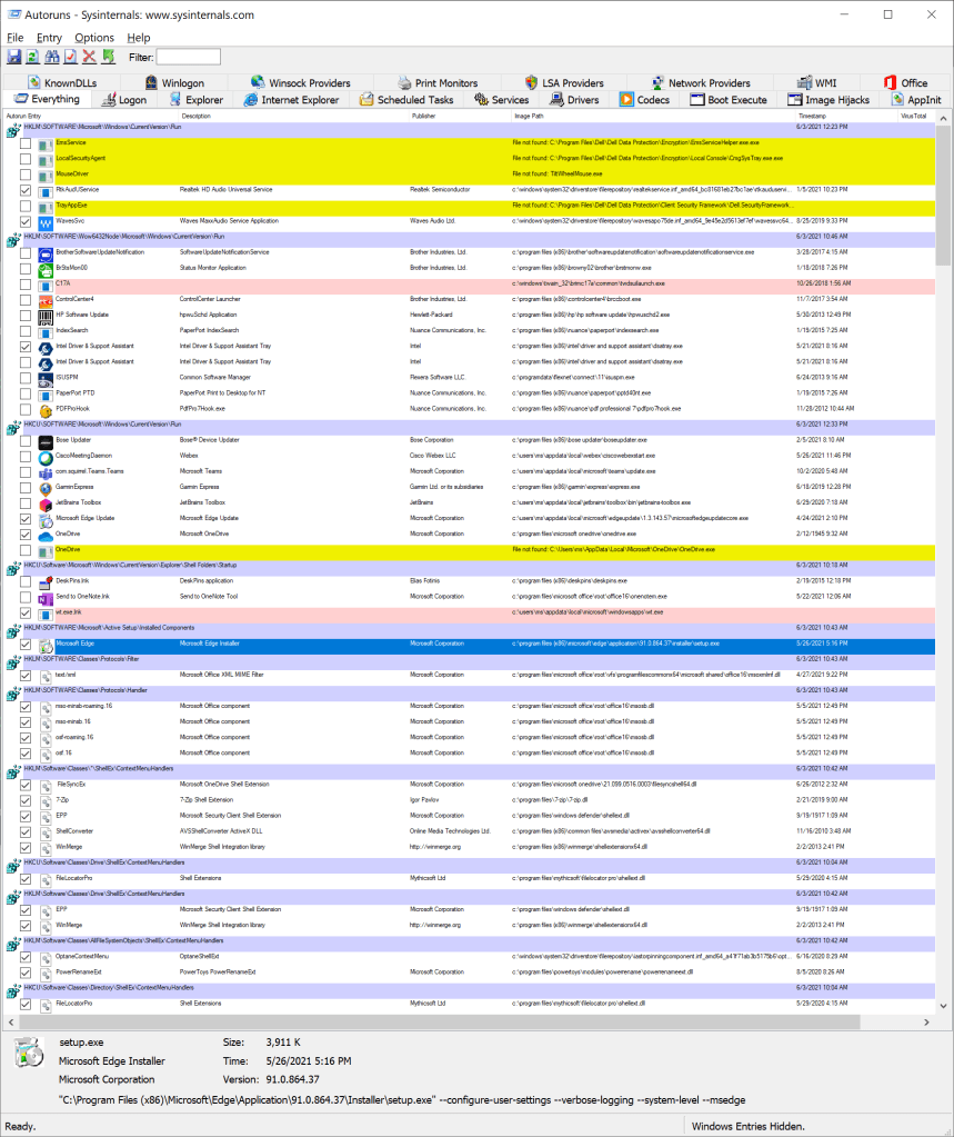 Another update: PureText was there after a reboot, so I am not sure if that was ever gone. Other than two semi-suspicious but also semi-expected things for edge (“performance”), which might have even been there before, I do not see any startup changes. I will leave the two edge things in place for now.
