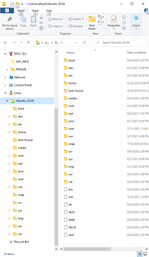 I do not a Linux node in Windows Explorer, but again, I might not have noticed it in a previous version of Windows.