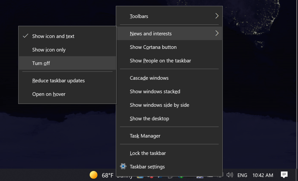 I notice the weather to the left of the tray, which you can turn off by right-clicking and selecting News and Interests. Generally, my reaction to any new Windows feature is to disable it.