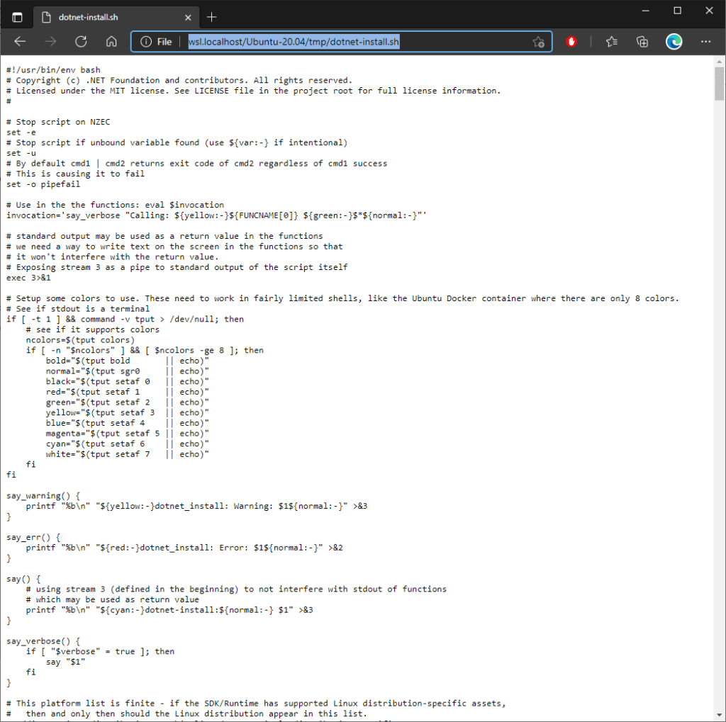 In Windows, I opened an .html file in the Windows Subsystem for Linux (WSL) /tmp directory (corresponding to \\wsl.localhost\Ubuntu-20.04\tmp on Windows) and found something unexpected in the address bar: file://wsl.localhost/Ubuntu-20.04/ followed by the Unix file system path to the file.