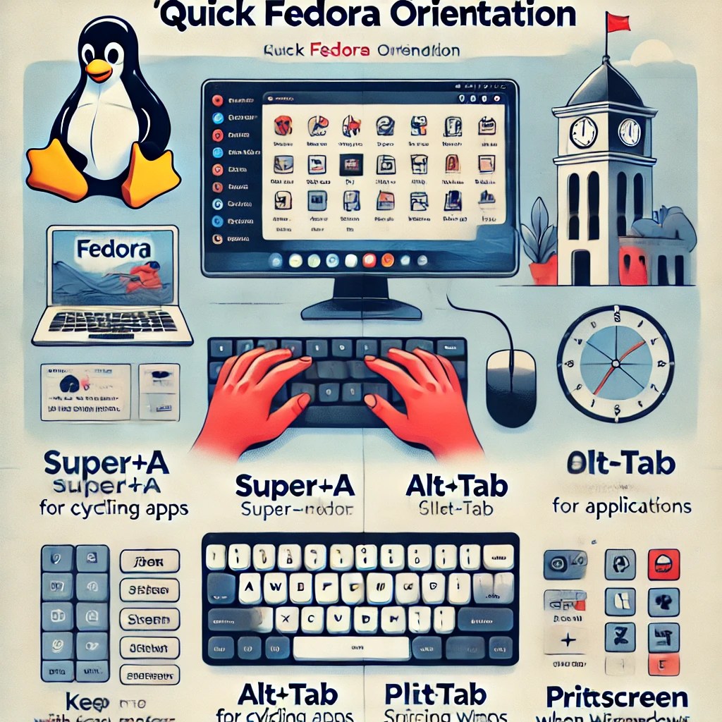 You can use the mouse to interact with the GNOME environment that Fedora provides, starting with the icons at the top left and top right. You can also use keyboard shortcuts. At least once, a desktop machine did not seem to wake from sleep, so I disabled automatic sleep. When I switch from Fedora backContinue reading “Quick Fedora Orientation”